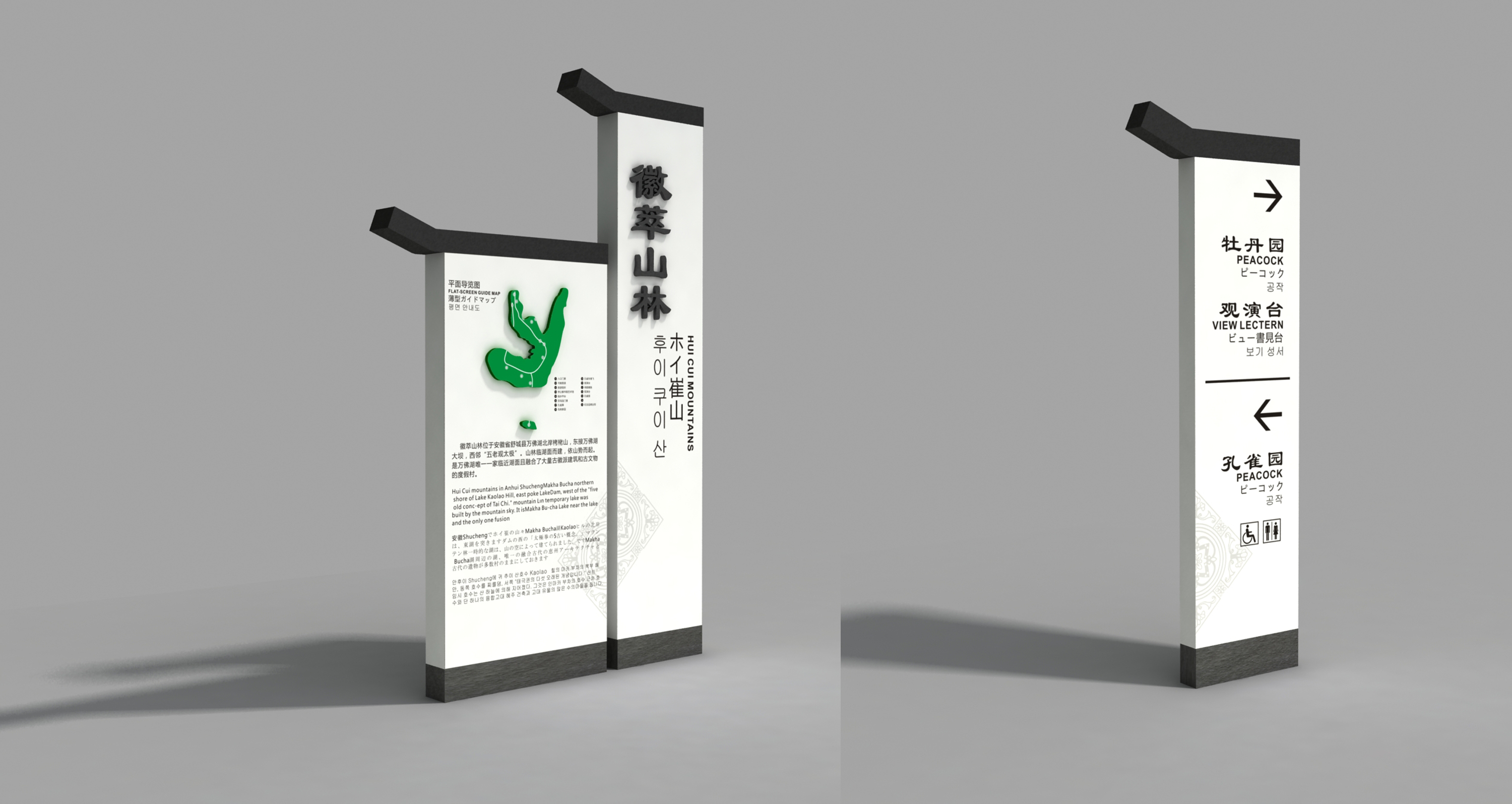 我們在標識設(shè)計時首先從游客角度出發(fā),對景區(qū)內(nèi)各個景點、公共設(shè)施及服務(wù)設(shè)施的方位及線路進行分析,在保證景區(qū)標識牌識別功能的前提下,讓標識形式風格及材料選用等都應(yīng)盡可能同周圍環(huán)境相協(xié)調(diào)并強調(diào)網(wǎng)絡(luò)性、系統(tǒng)性、統(tǒng)一性。